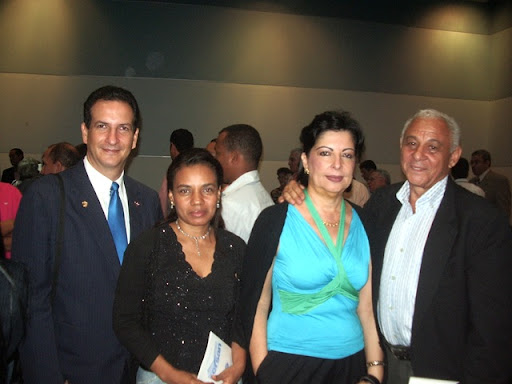 A la izquierda cuando revisaban el sello conmemorativo, luego Jochy Pérez en su disertación. Familiares entre los que se destacan Patricia Hoepelman, Aleyda Alba Garcia de Hoelpeman, doña Triana, Jochy, etc. a la derecha Jochy, con una asistente al acto, Gleidy Pérez y Narciso Almonte