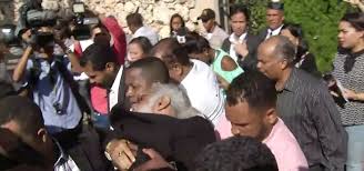 Visiblemente inquieta, la Defensora del Pueblo llamó a un pariente para que la asistiera y se marchò de la funeraria en una guagua gris.