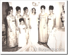 Los novios, luego con su corte formada por : Ana Josefina Hernando (Pipi), Dennis Gullón, Yayita Hernando, Blanca , Rosita Ramos y Gisela Ramos. El paje es Dorka Hernando.